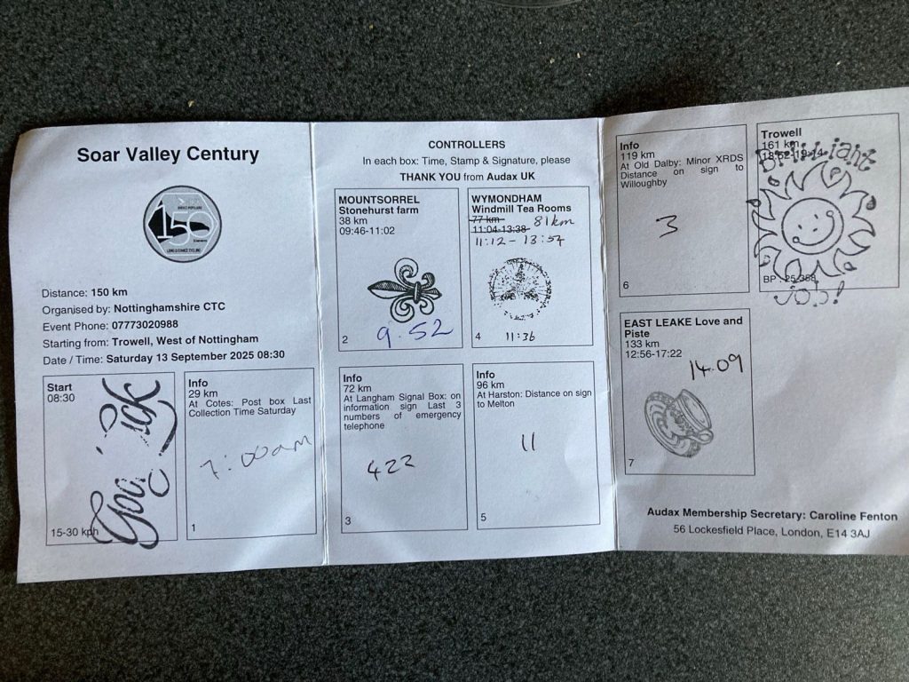 There was good attendance from the club at the CTC autumn 100 mile Soar Valley Audax in September. The picture might not give a hint, but it was soaking by the end of the day!